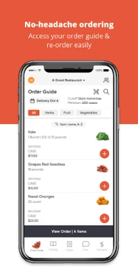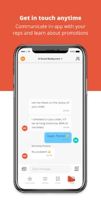 - No-headache ordering: access our full catalog & re-order easily - Better manage deliveries: track order status and view full order history - Keep everything together: delivery days, cutoff times, order updates, and promotions all in one - place - Align your team: Fully viewable records of chats and order history to make sure everyone stays on - the same page - Get in touch anytime: communicate directly with your McCartney Produce rep in the app
