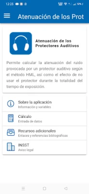Esta aplicación calcula la atenuación del ruido que ofrece un protector auditivo con una exactitud media-alta a partir de los valores H, M, L que suelen aparecer en el folleto del fabricante y de los niveles de ruido globales ponderados A y C obtenidos a partir de la medición del ruido ambiental.