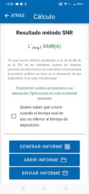 La aplicación permite también calcular la atenuación efectiva del protector auditivo teniendo en cuenta su tiempo de uso, ya que si el EPI no se utiliza durante el tiempo total de exposición la atenuación que teóricamente ofrece (información del fabricante, obtenida en ensayos de laboratorio) puede verse reducida drásticamente.